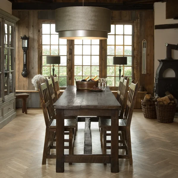 Eettafels van oud eikenhout hebben niet alleen een natuurlijk verweerde uitstraling, maar zijn ook uiterst duurzaam. Wij gebruiken uitsluitend oud eikenhout uit centraal Europa. Hier is het vaak al eeuwen gebruikt als gevelbekleding vanwege haar stevigheid en lange levensduur. Dit wordt ook wel ‘barnwood’ genoemd.