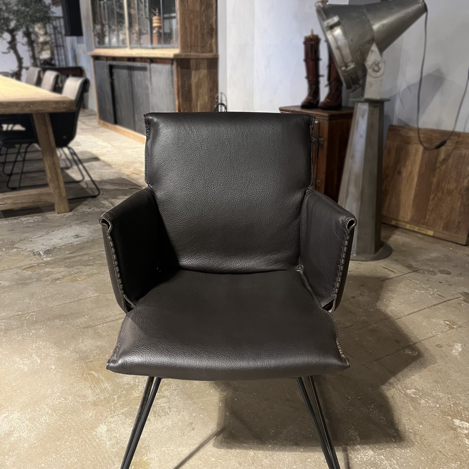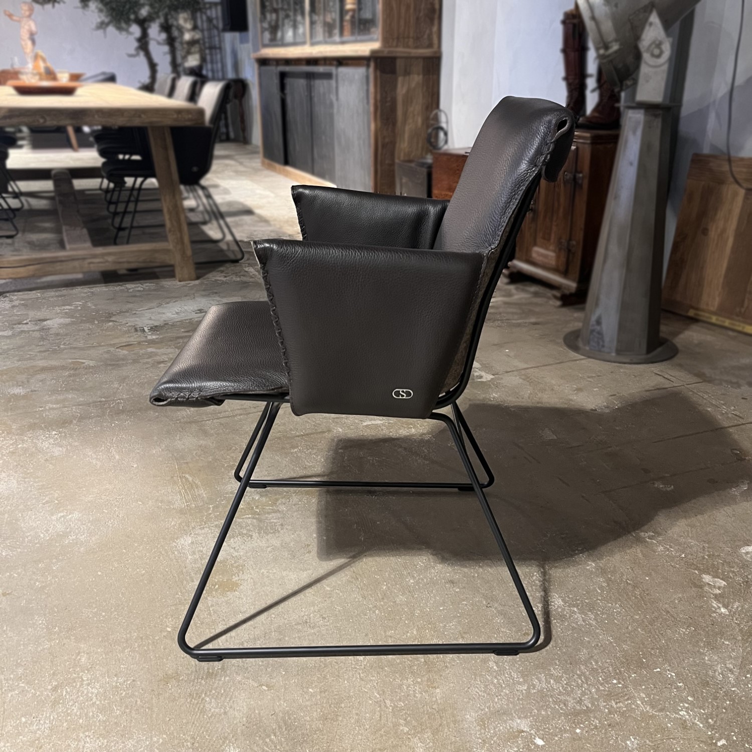 De DS-515 stoel is een ontwerp van het design duo Greutmann Bolzern! En dat is te zien: door de meesterlijke combinatie van een luchtig ogende stalen pootconstructie en een slanke gewatteerde leren bekleding is het design ronduit tijdloos.