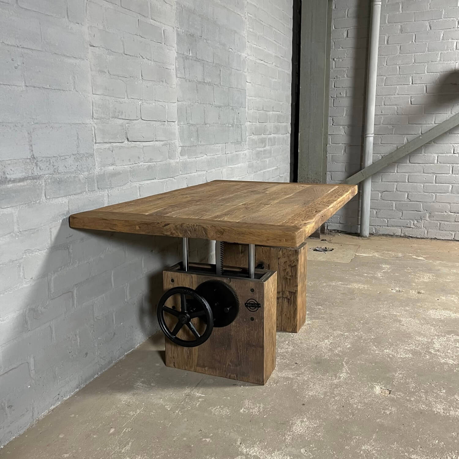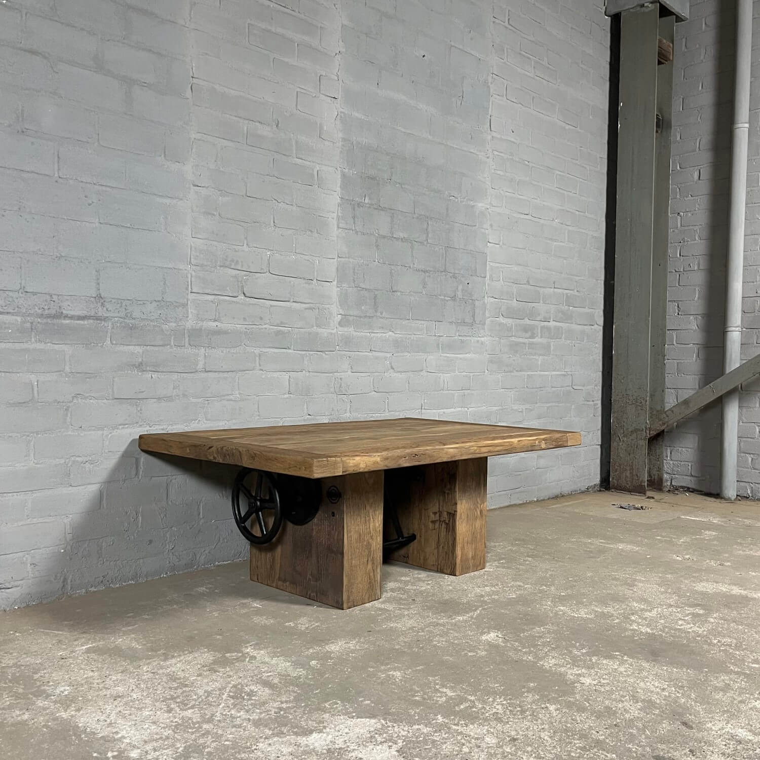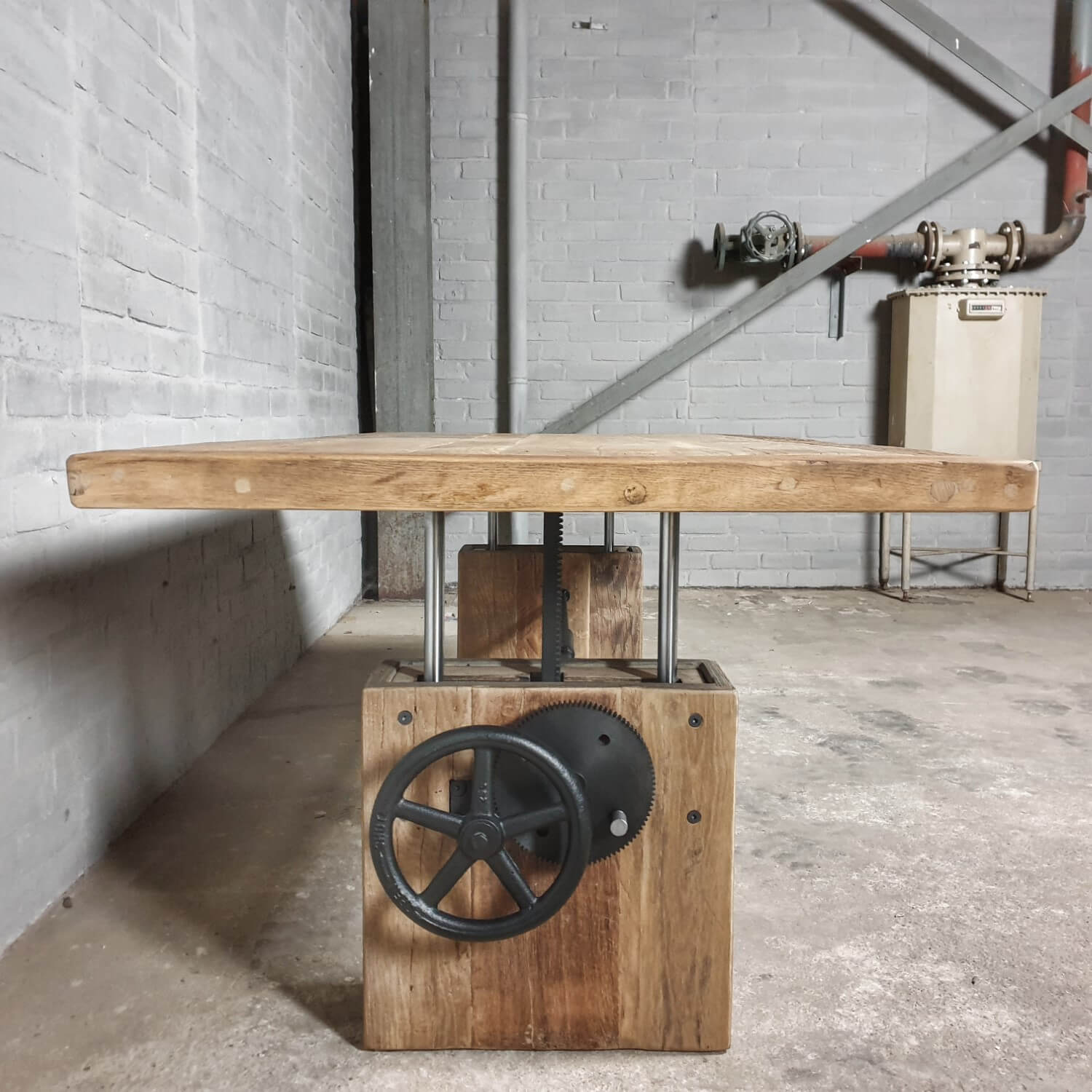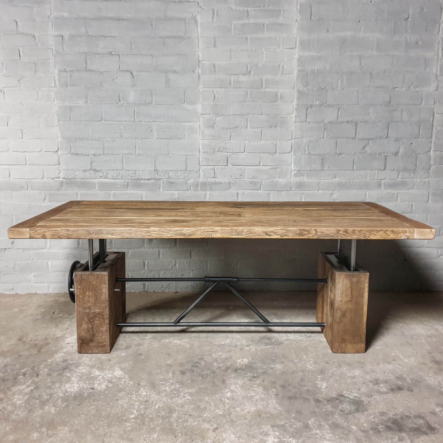 Deze stijlvolle eiken salontafel is in hoogte verstelbaar en daarom ook te gebruiken als eettafel.
