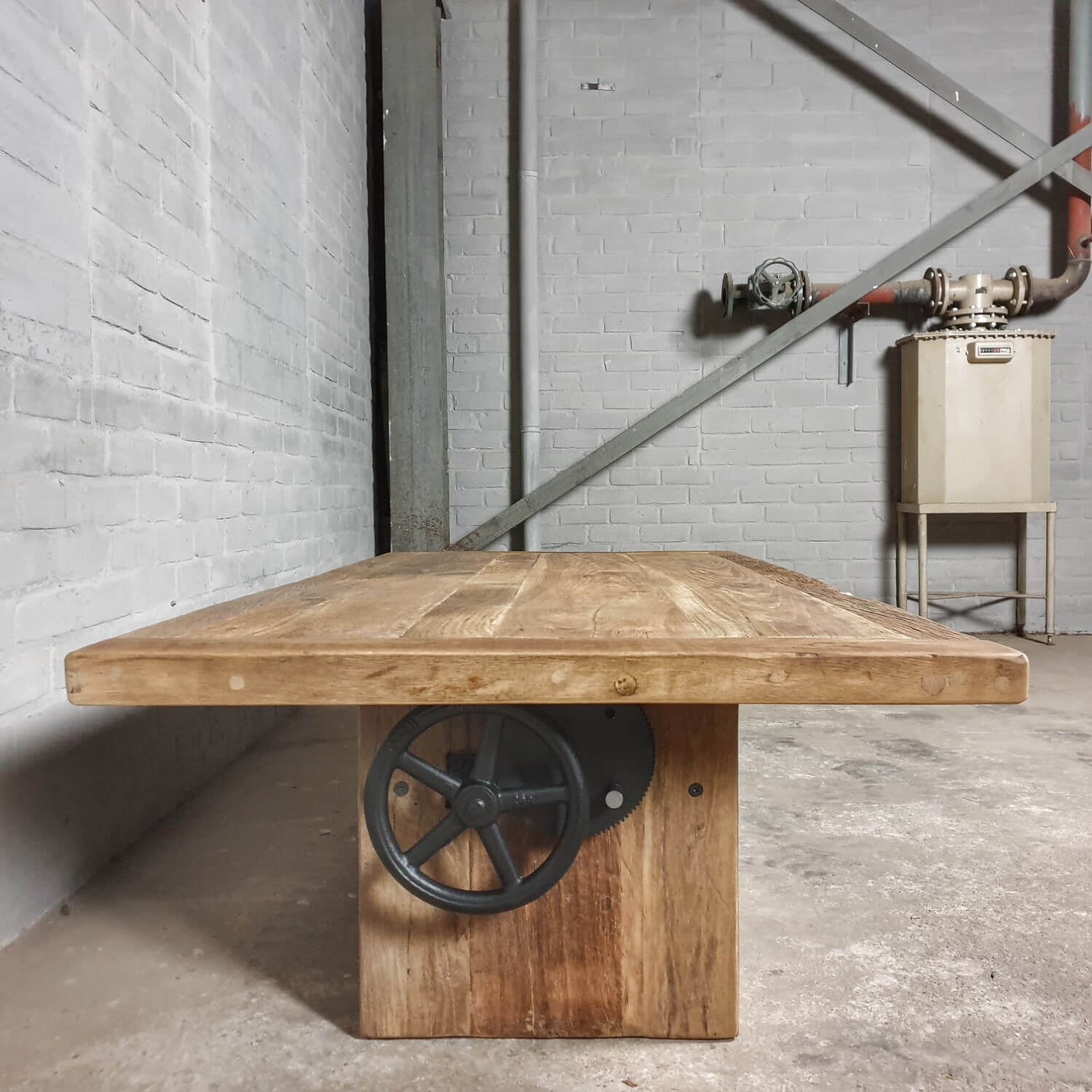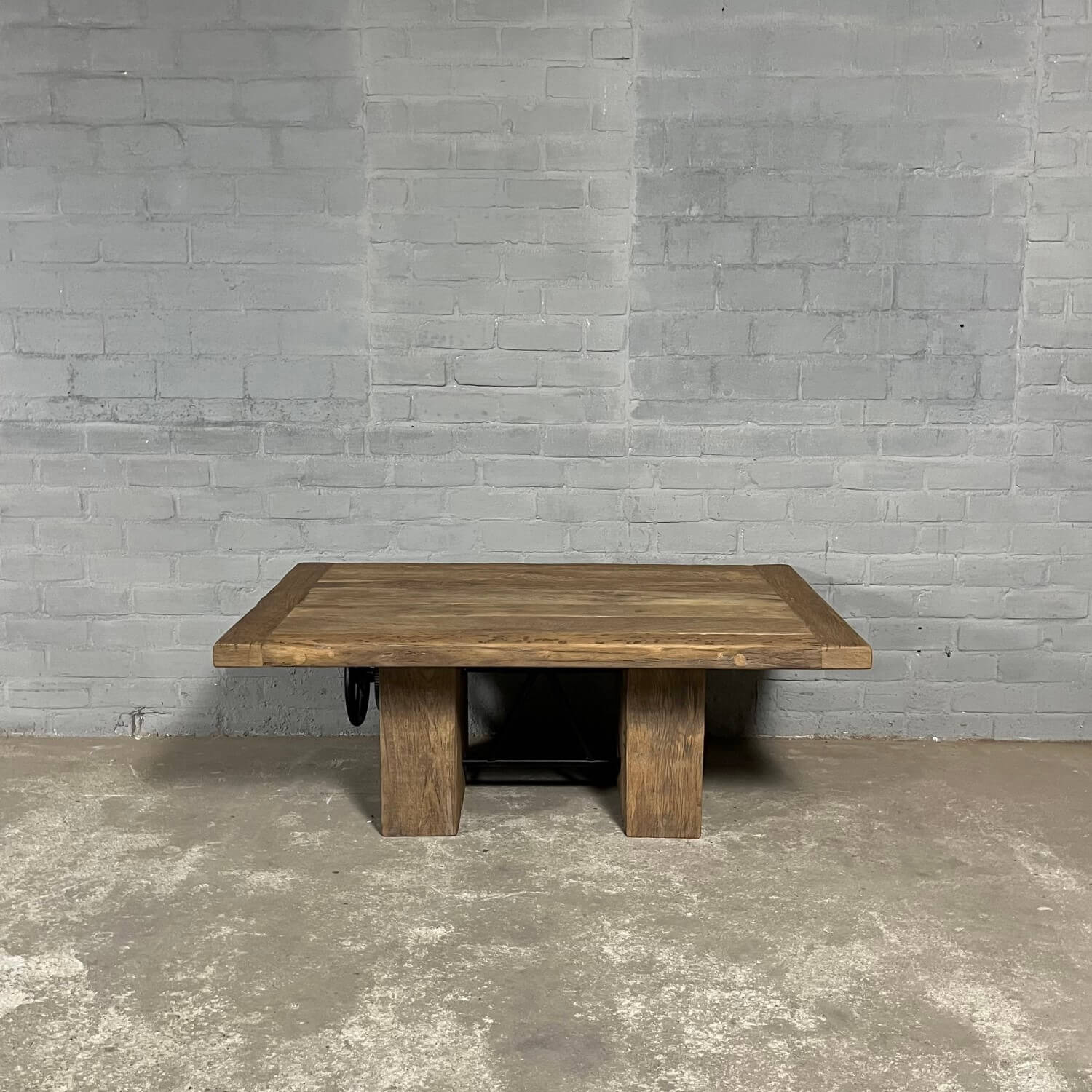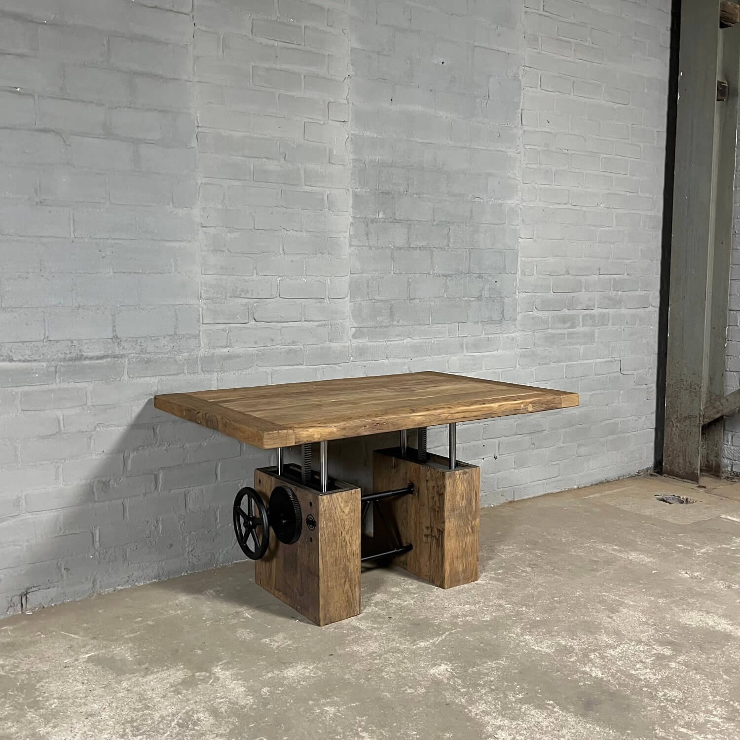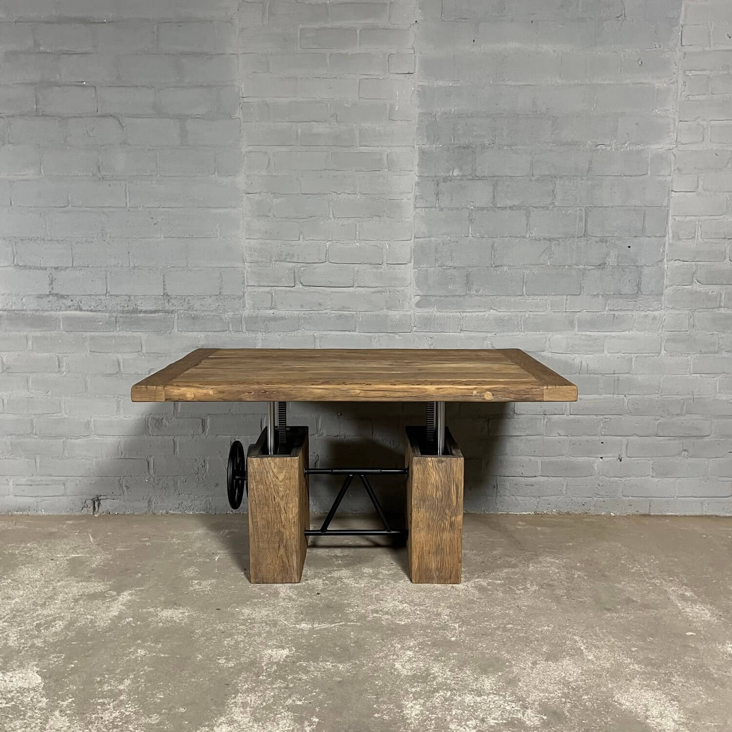 Deze stijlvolle eiken salontafel is in hoogte verstelbaar en daarom ook te gebruiken als eettafel.