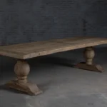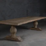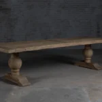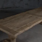 Houten eettafel “Florence” wordt gemaakt van hergebruikt oud eikenhout naar oud kloostertafel model. De buitenrand van het tafelblad is gemaakt van 7cm dik massief houten balken. De binnenkant is gemaakt van houten planken die op een meubelplaat zijn bevestigd.