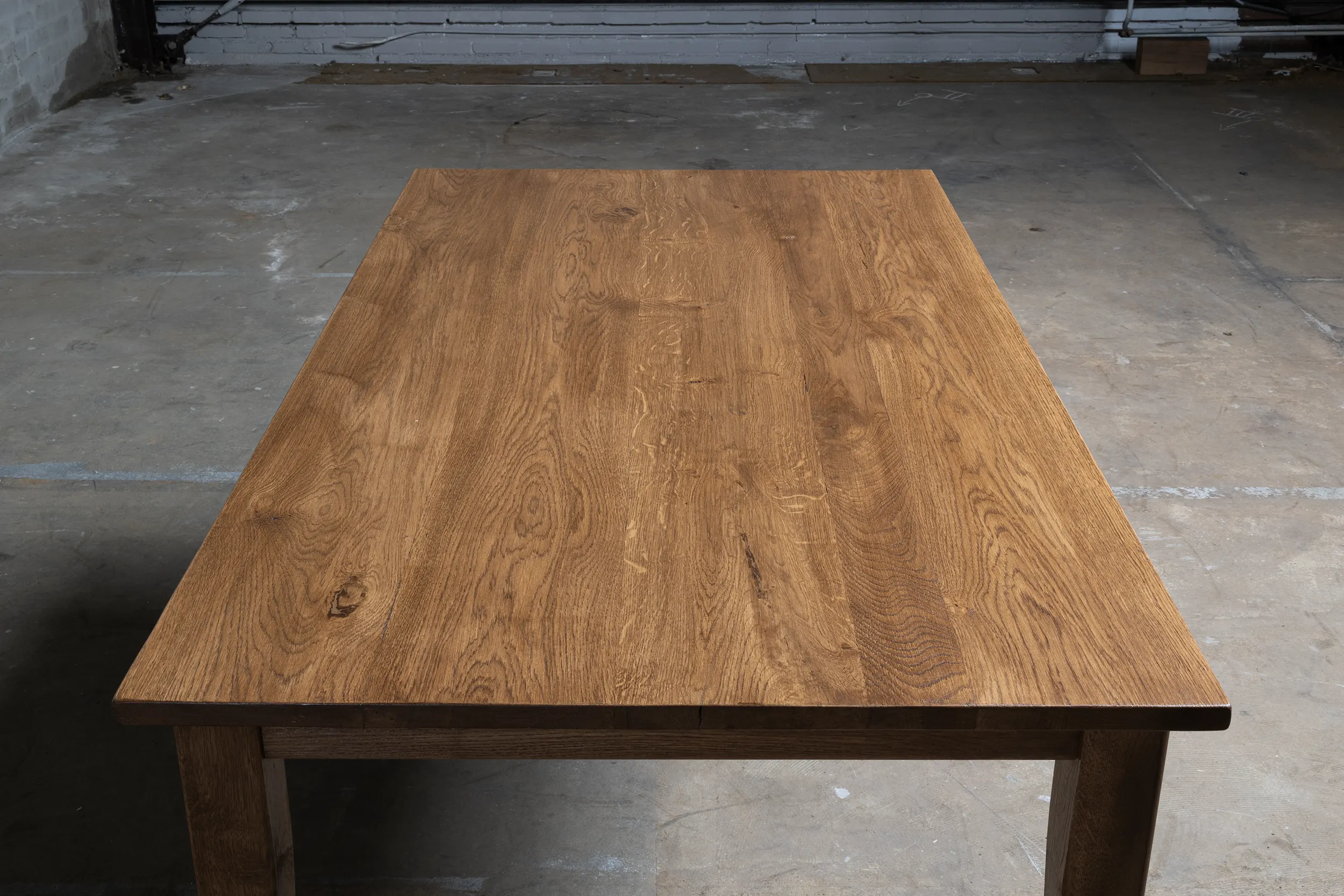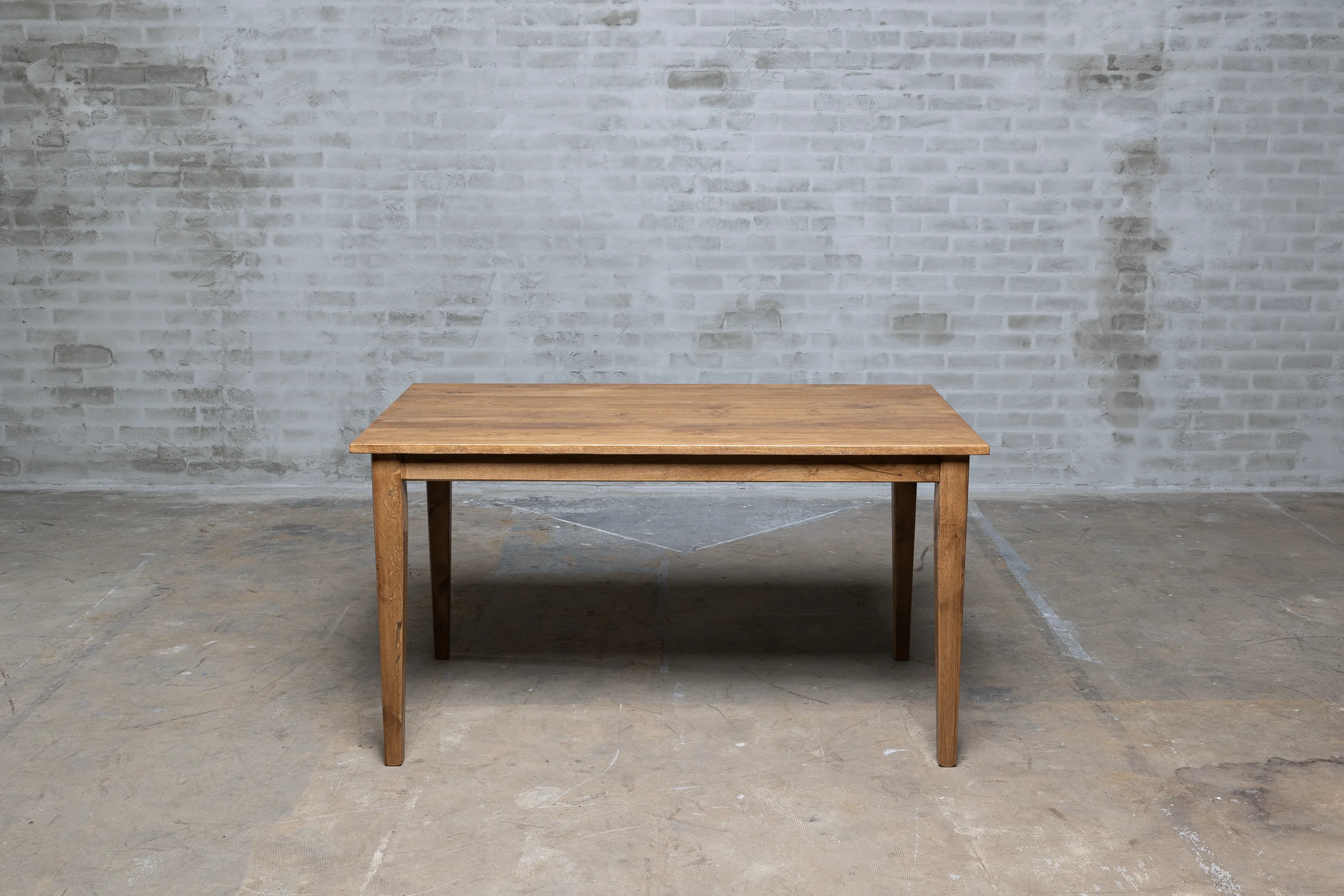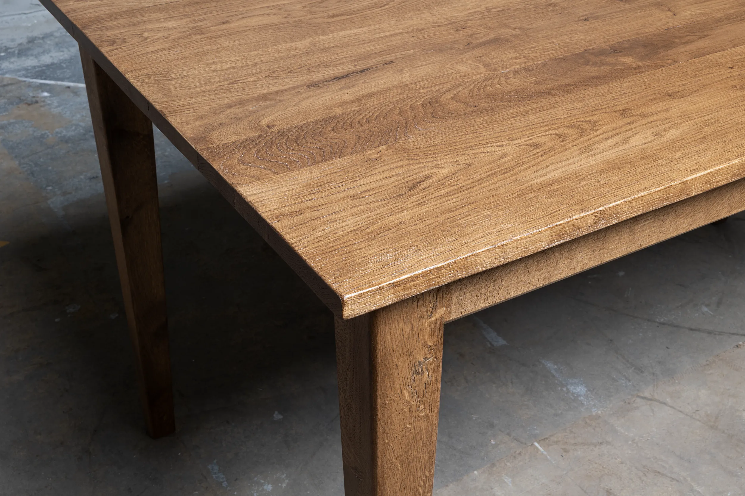 Franse eettafel van eikenhout naar authentiek Frans model. De tafel wordt in onze eigen werkplaats ambachtelijk met de hand gemaakt van hoogwaardig eikenhout. De tafel is naar wens verkrijgbaar in verschillende kleuren, waaronder de standaardkleuren in het menu.