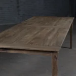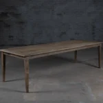 Deze Franse eiken eettafel is in onze werkplaats gemaakt naar het model van de authentieke Franse boeren tafels. De tafel is gemaakt van zonverbrand oud eikenhout. Doordat dit hout jarenlang als gevelbekleding in de zon is verkleurd heeft het een prachtige patine gekregen.