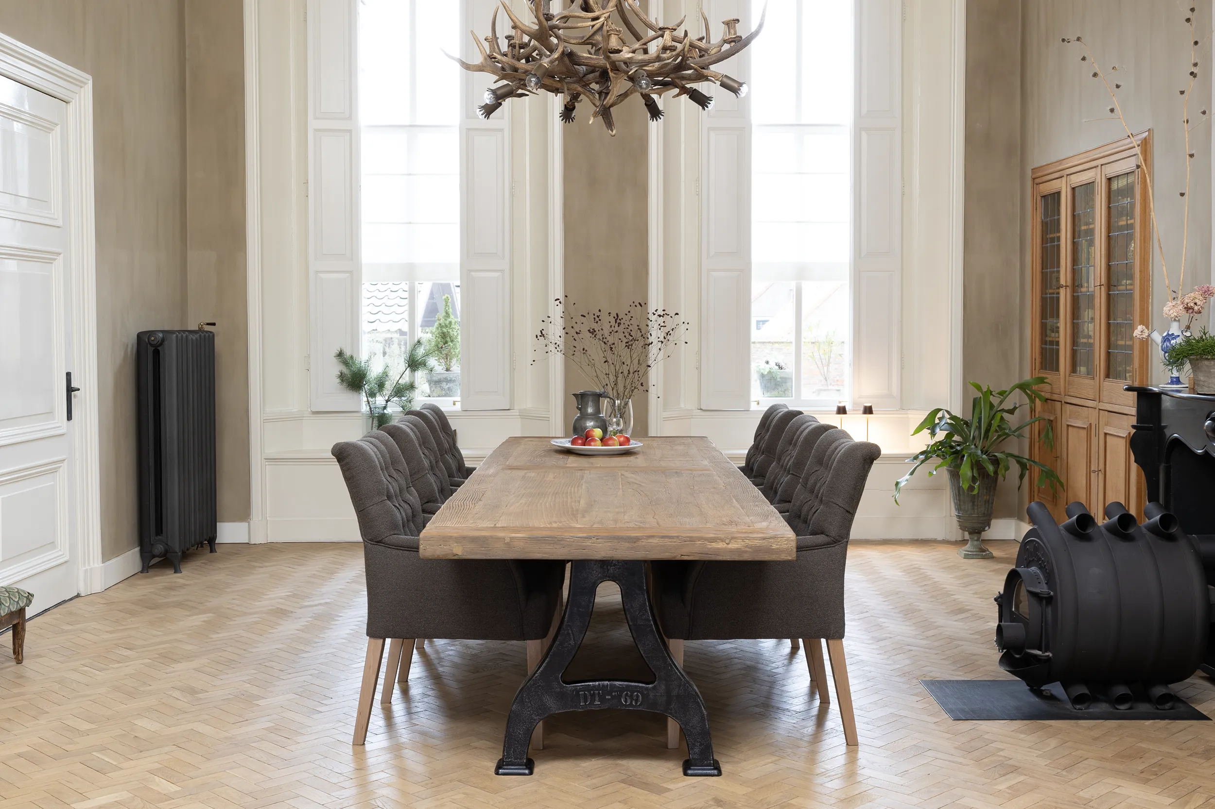 Deze industriële eettafel van eikenhout met metalen tafelpoten wordt in eigen werkplaats op maat gemaakt. De combinatie van hout en ijzer is kenmerkend voor industriële meubelen en dat geeft de tafel dan ook zijn robuuste uiterlijk.