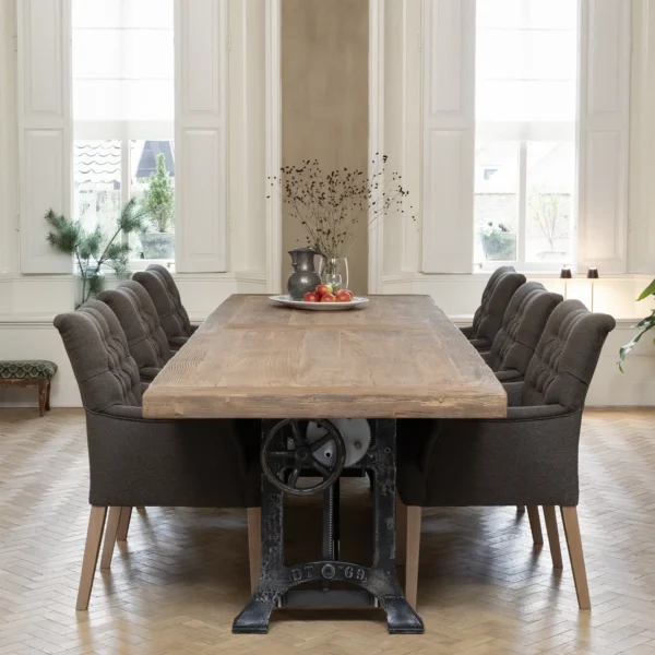 Deze industriële eettafel van eikenhout met metalen tafelpoten wordt in eigen werkplaats op maat gemaakt. De combinatie van hout en ijzer is kenmerkend voor industriële meubelen en dat geeft de tafel dan ook zijn robuuste uiterlijk.