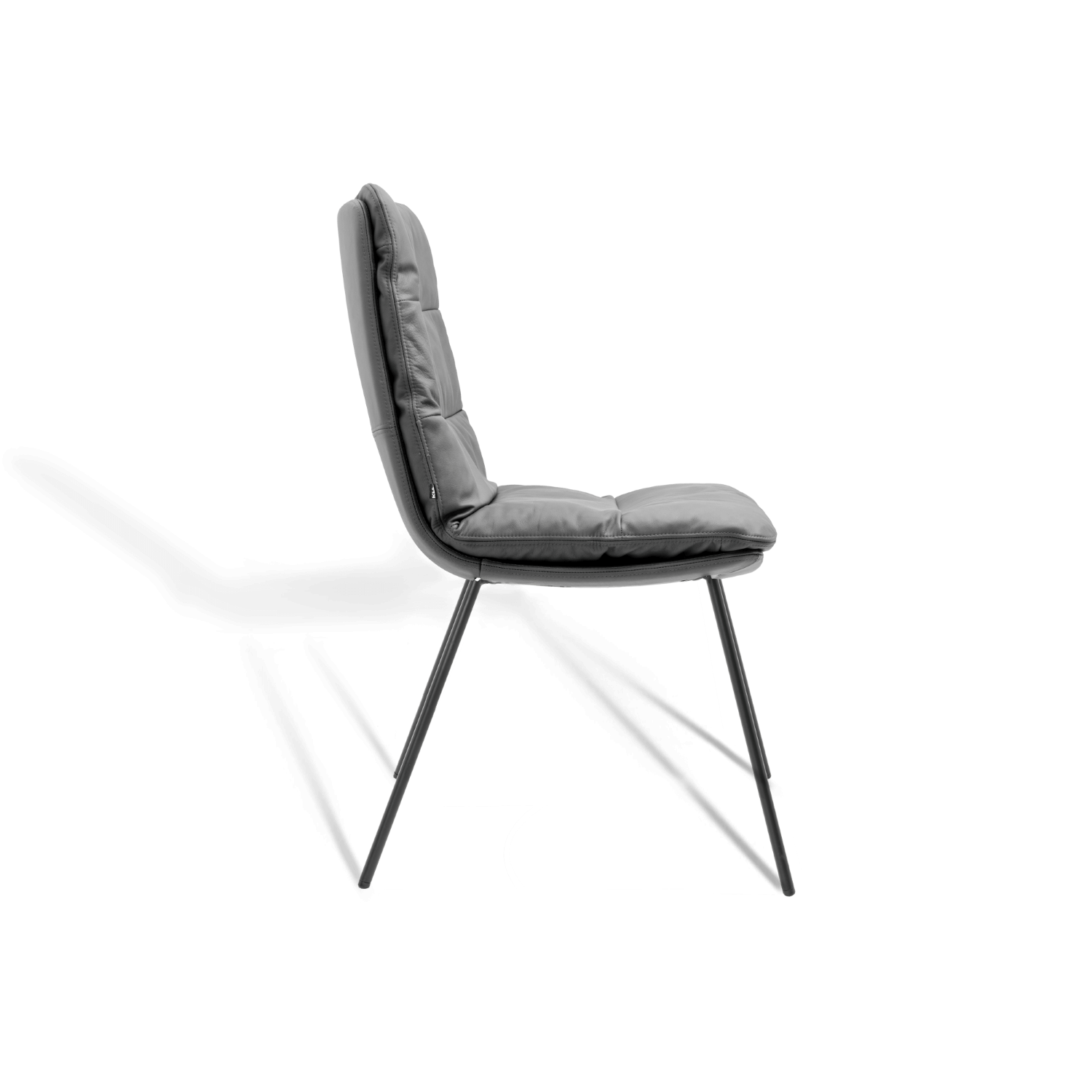 De Arva moderne eetkamerstoel zonder armleuning is uitgerust met luchtige zitkussens die diep inveren wanneer men gaat zitten. De manier waarop de kussens op de stoel gemaakt zijn, in combinatie met het dunne stalen frame geven de stoel als geheel een moderne en elegante uitstraling. De stoel is gemaakt en ontworpen door het Duitse meubelmerk KFF. Dit merk staat sinds zijn oprichting in 1986 voor kwalitatief hoogwaardige en stijlvolle meubelen. Zo bent u verzekerd van bewezen kwaliteit.