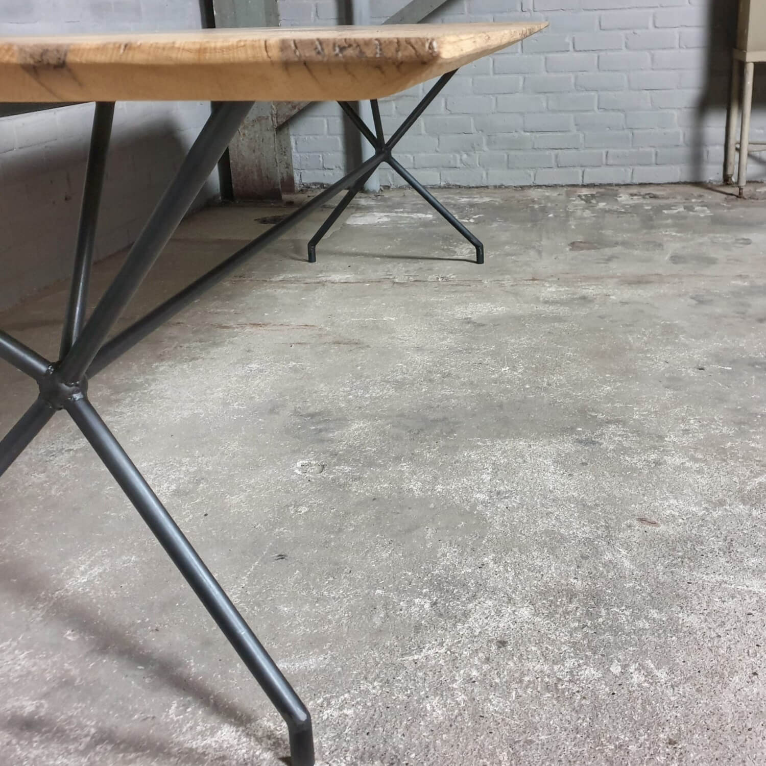 Deze tafel is voorradig en direct leverbaar met het tafelblad dat te zien is op de laatste foto in de galerij.