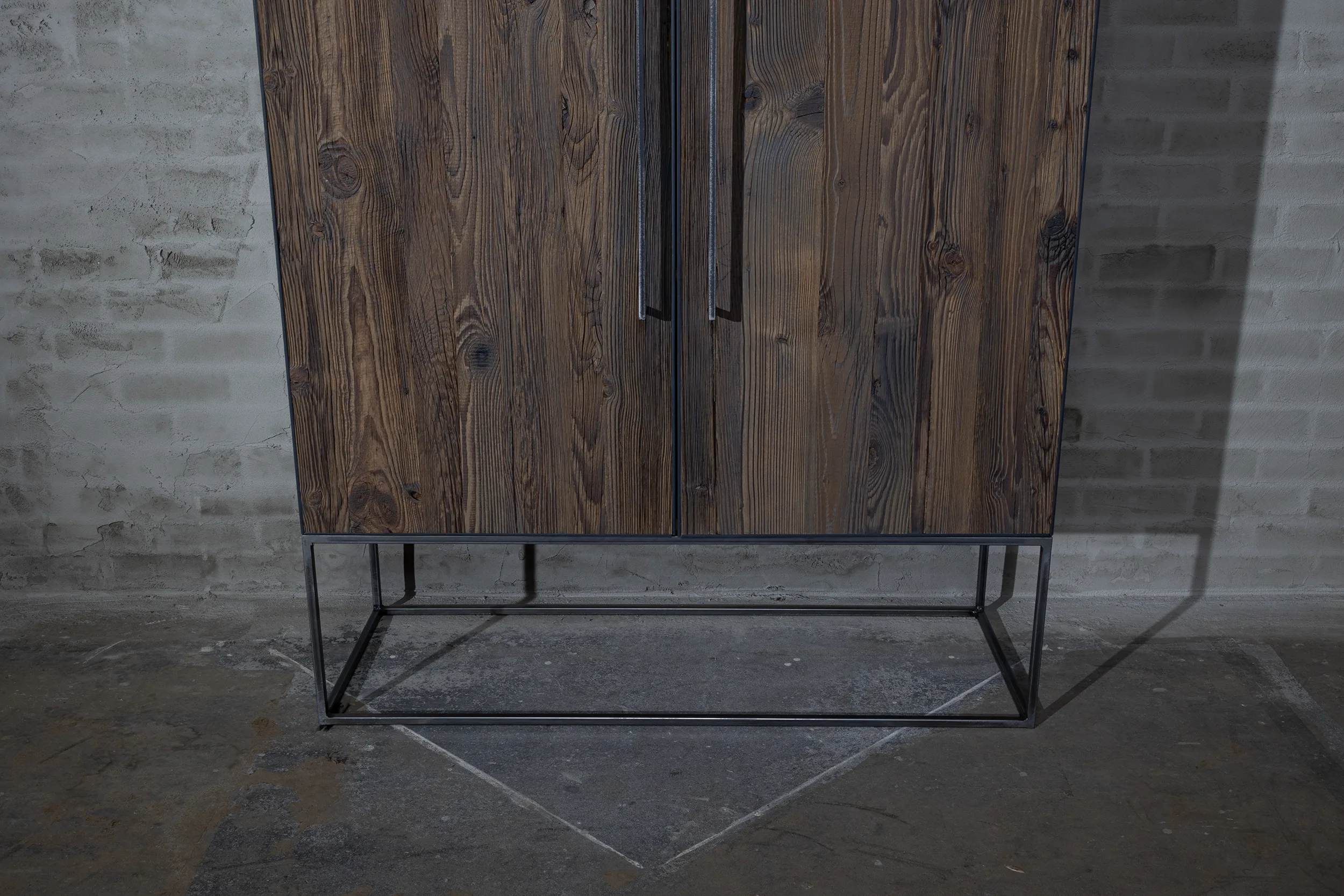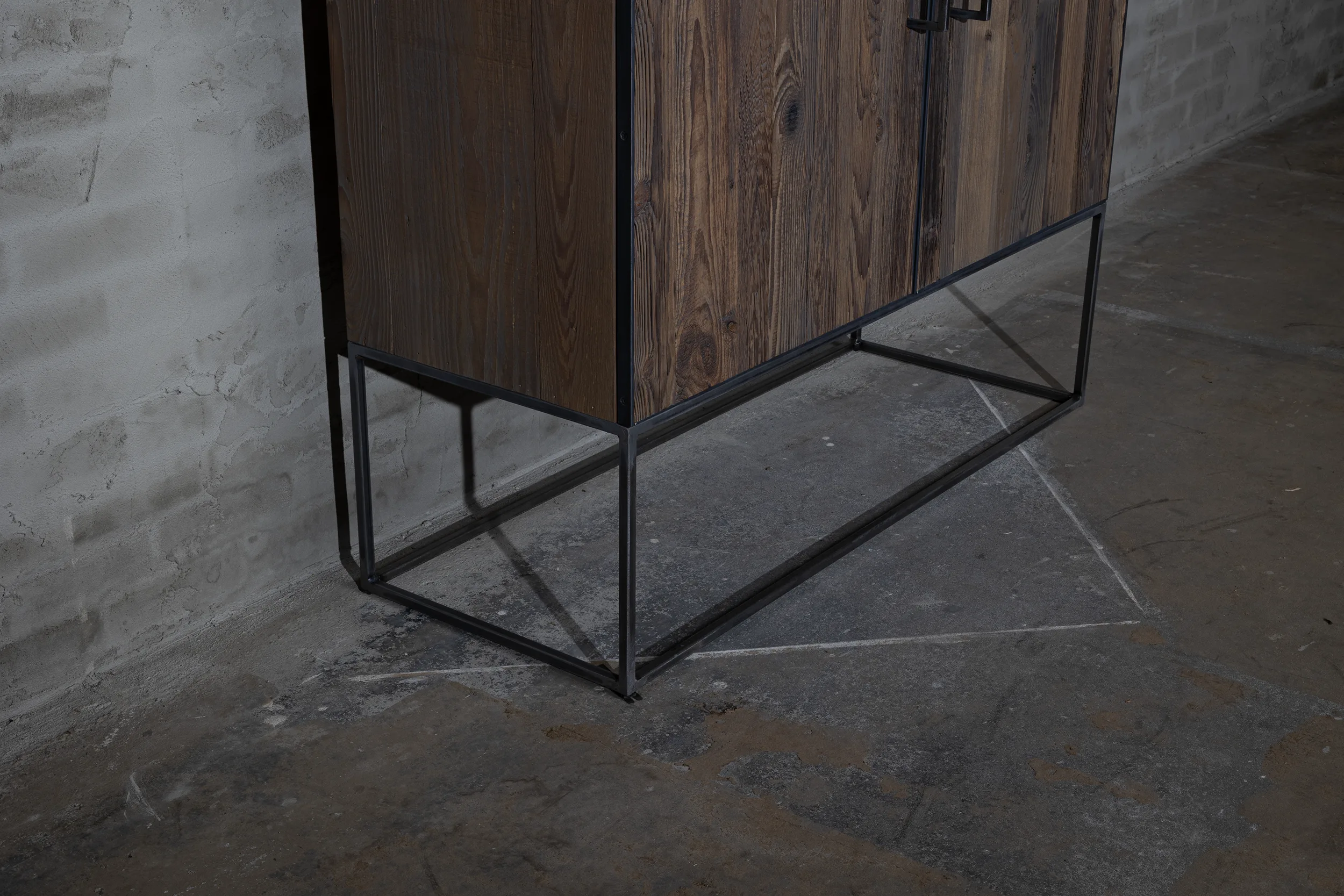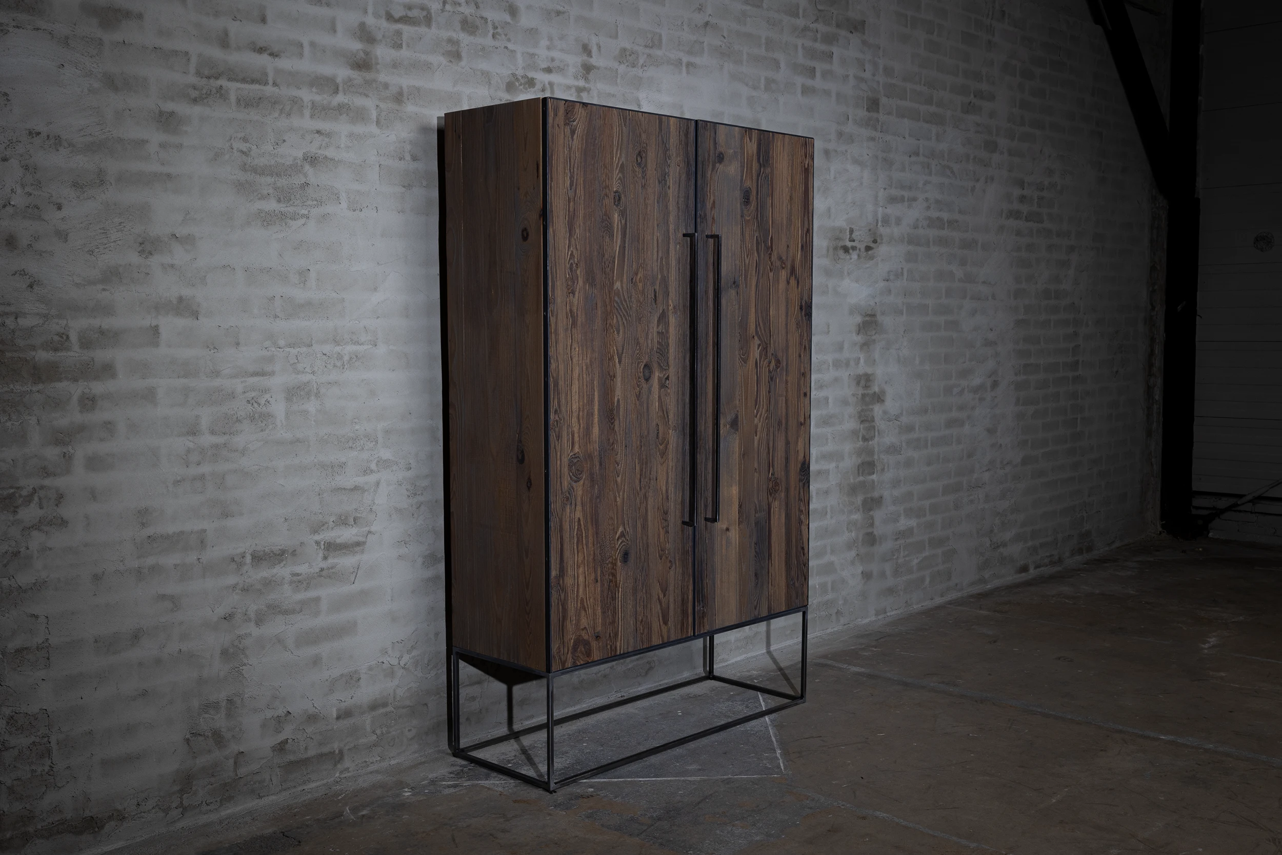 Deze industriële opbergkast is gemaakt van grenenhout met een stalen frame. Dit model is uitgerust met 4 ruime lades van 42cm diep, waardoor hij ideaal is als opbergkast. Daarnaast is er een zwartgrijze patina aangebracht op het hout.