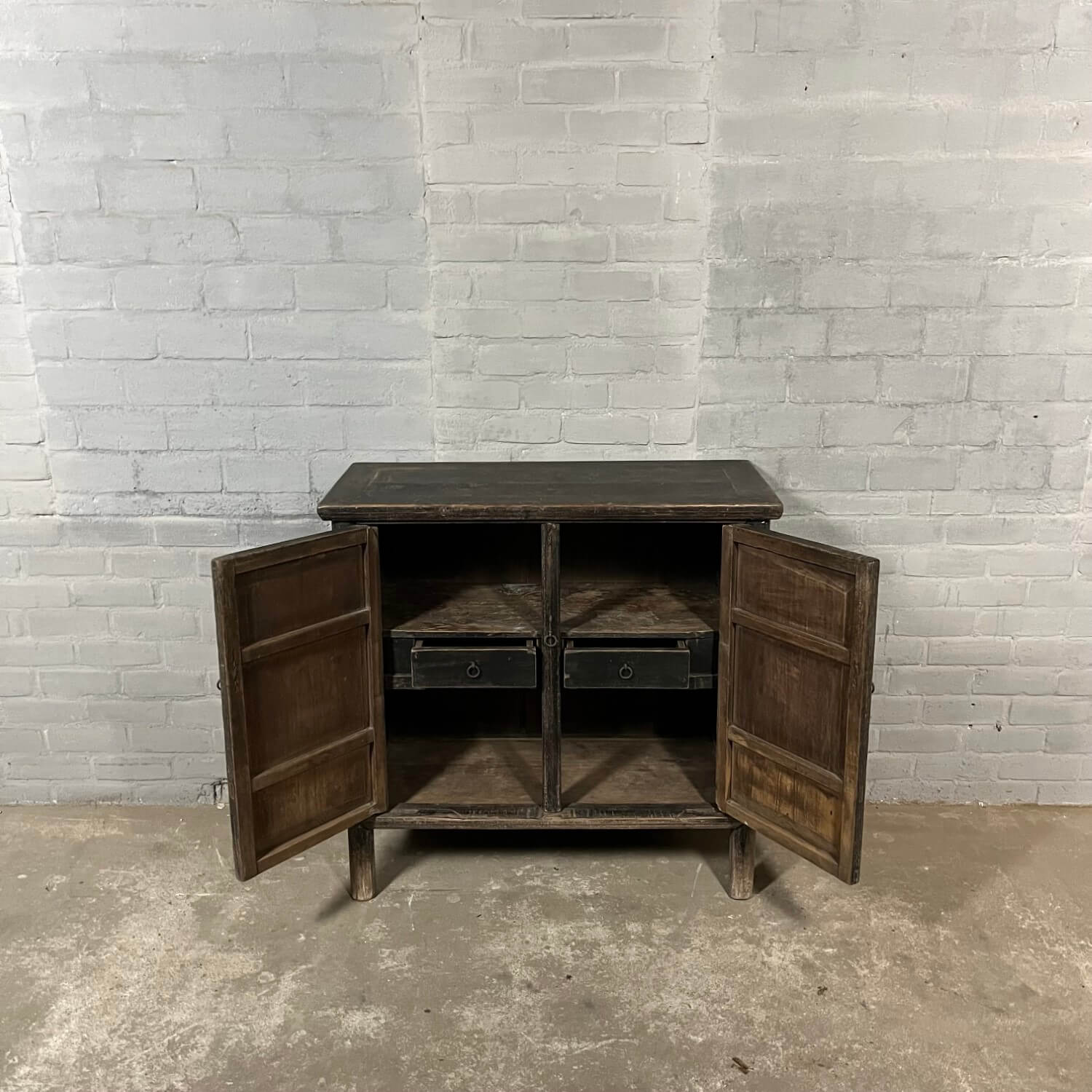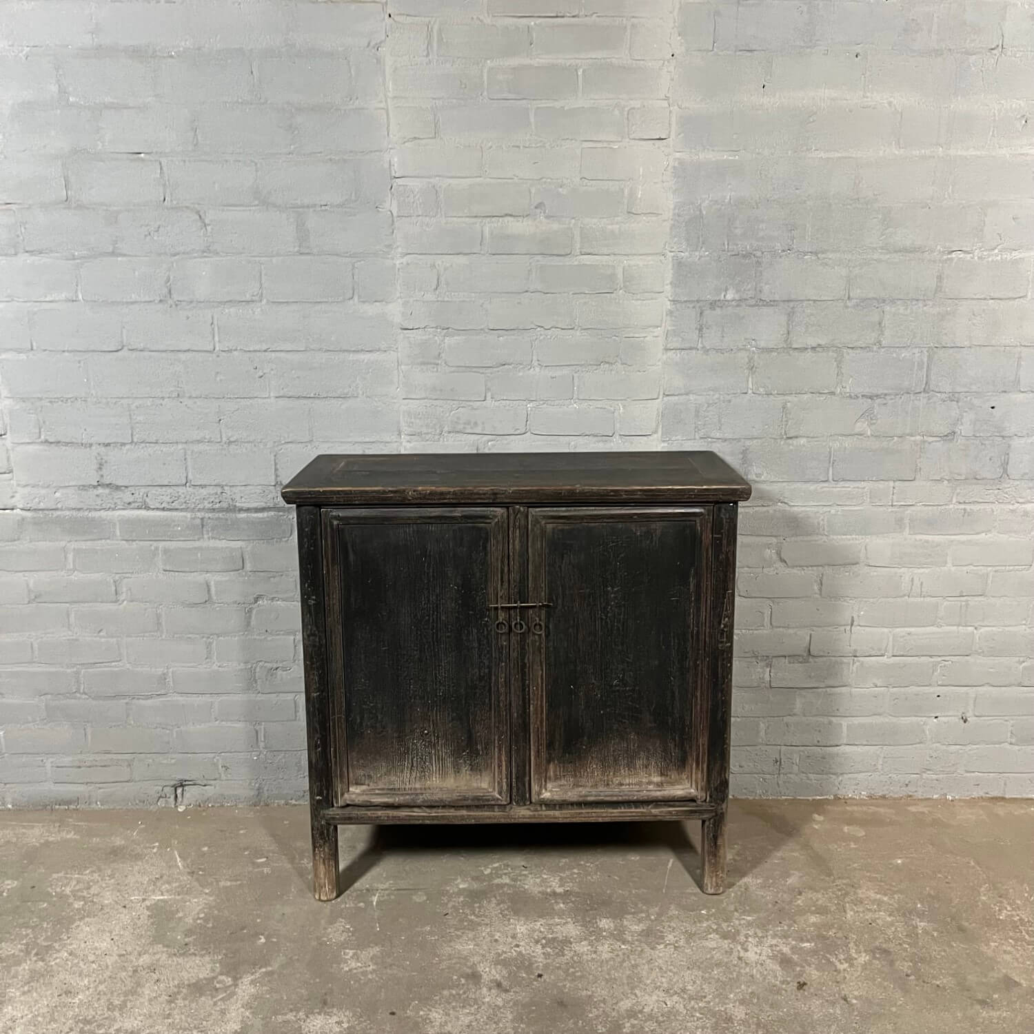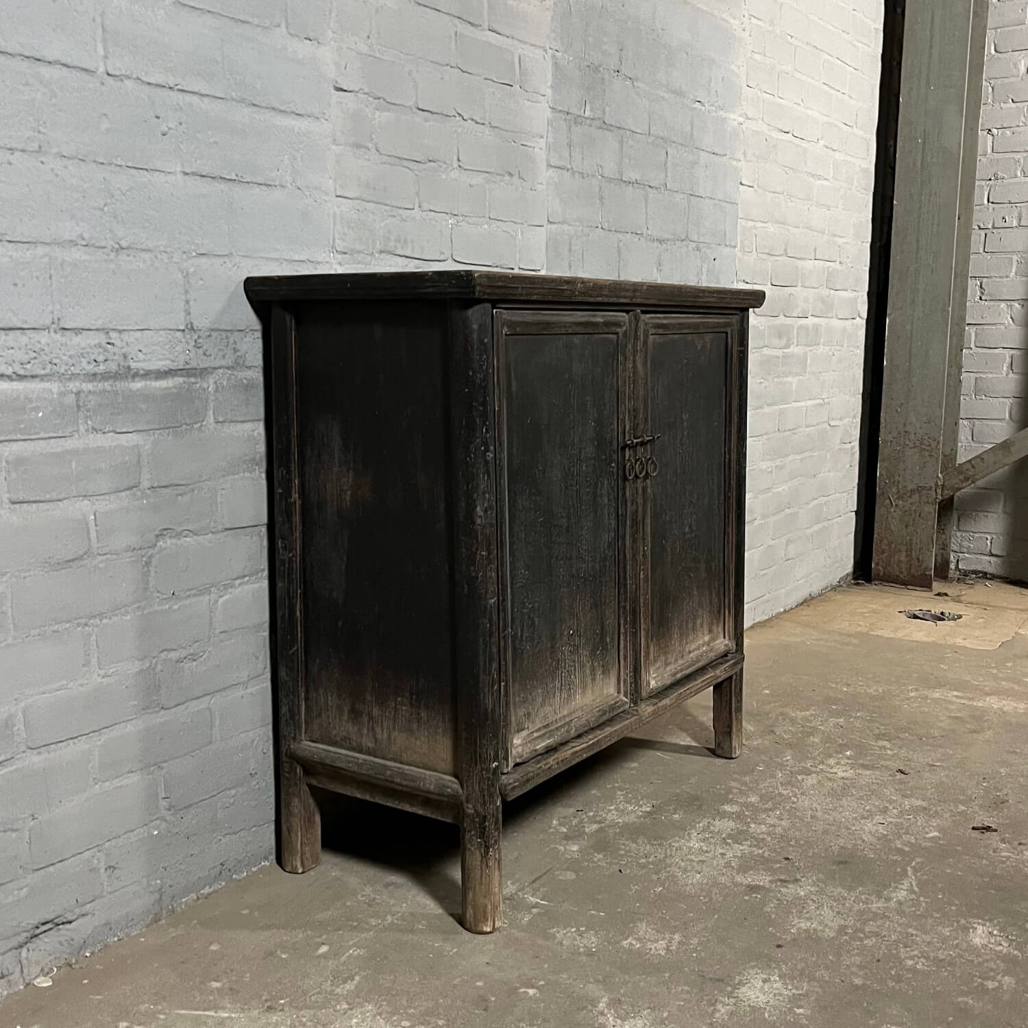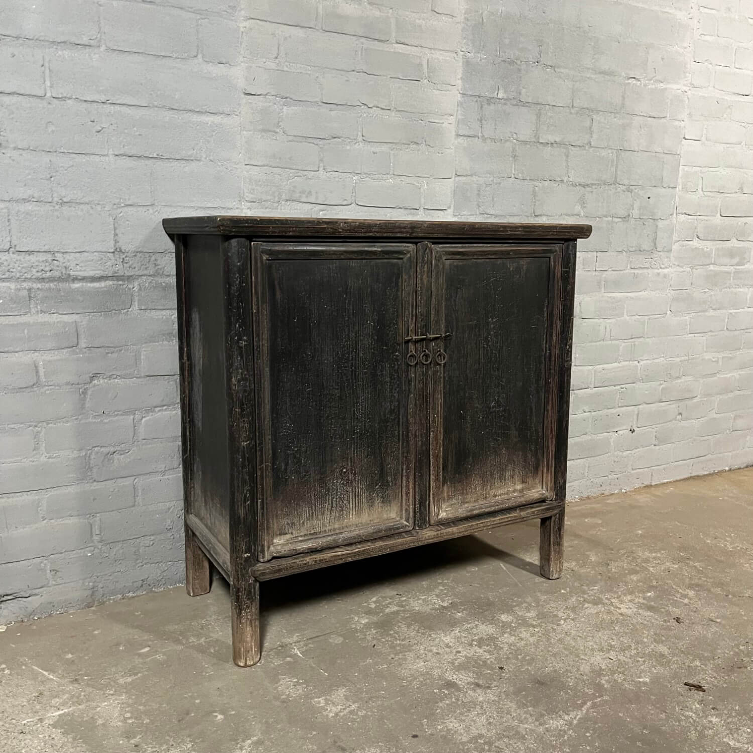 Oud dressoir met 2 deuren uit China. Op het iepenhout is een zwarte patina aangebracht.