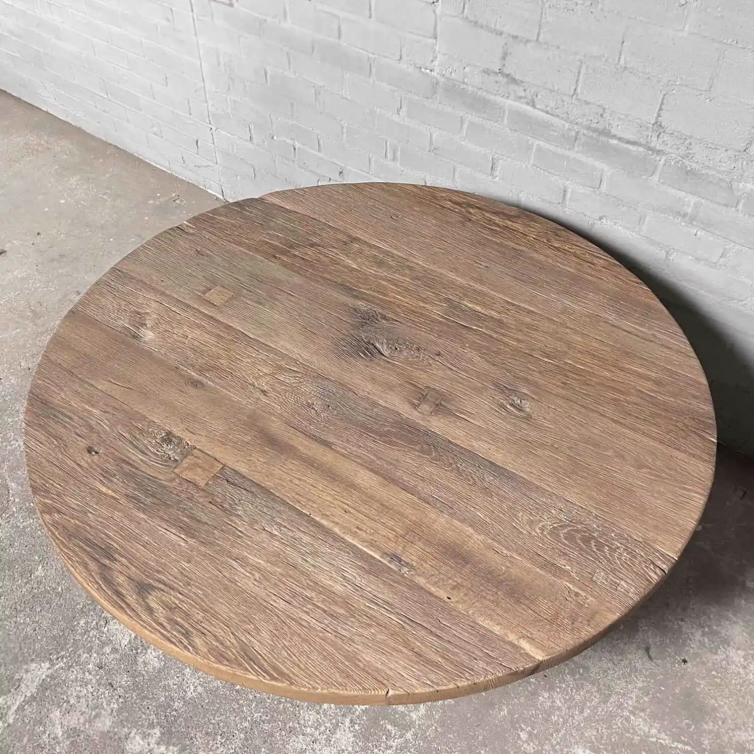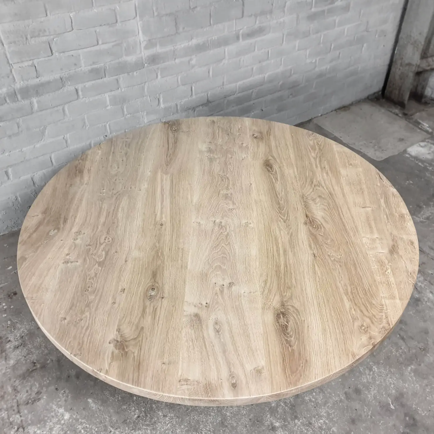 Een selectie aan verschillende ronde tafelbladen. De tafelbladen van oud eikenhout zijn te kleuren in een aantal natuurlijke tinten. Tafelbladen van nieuwe eikenhout zijn in vrijwel iedere kleur verkrijgbaar. Hiernaast zijn de tafelbladen in vrijwel iedere grootte te maken.