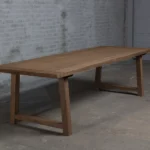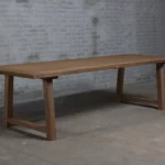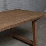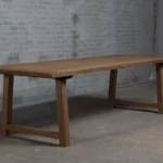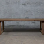 De T20 houten tuintafel is een kloostertafel voor buiten, en wordt op ambachtelijke wijze gemaakt in eigen werkplaats. Het tafelblad is gemaakt van 4,5cm dikke massief Frakéhouten planken. De sleuven over de lengte van het tafelblad zorgen voor afwatering.