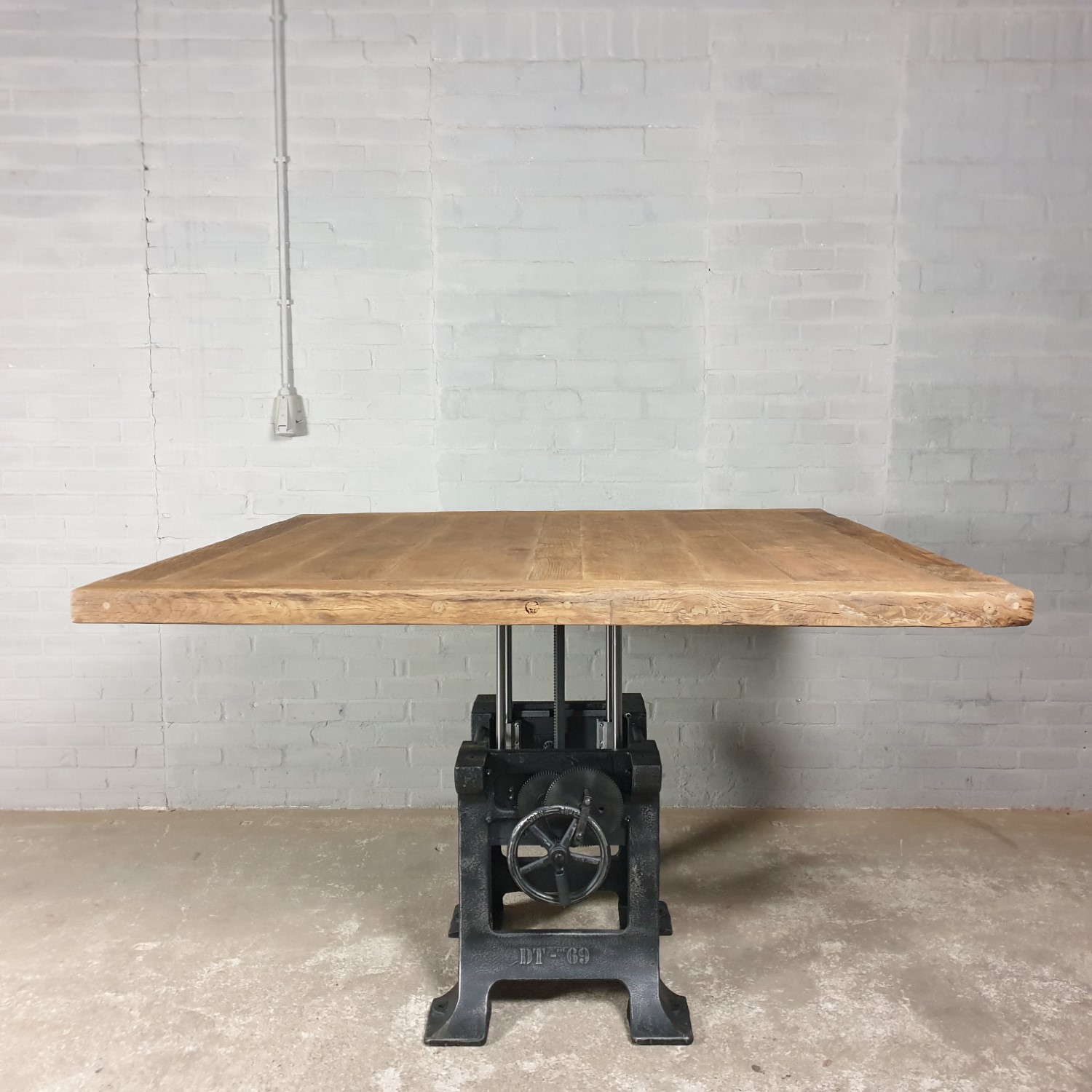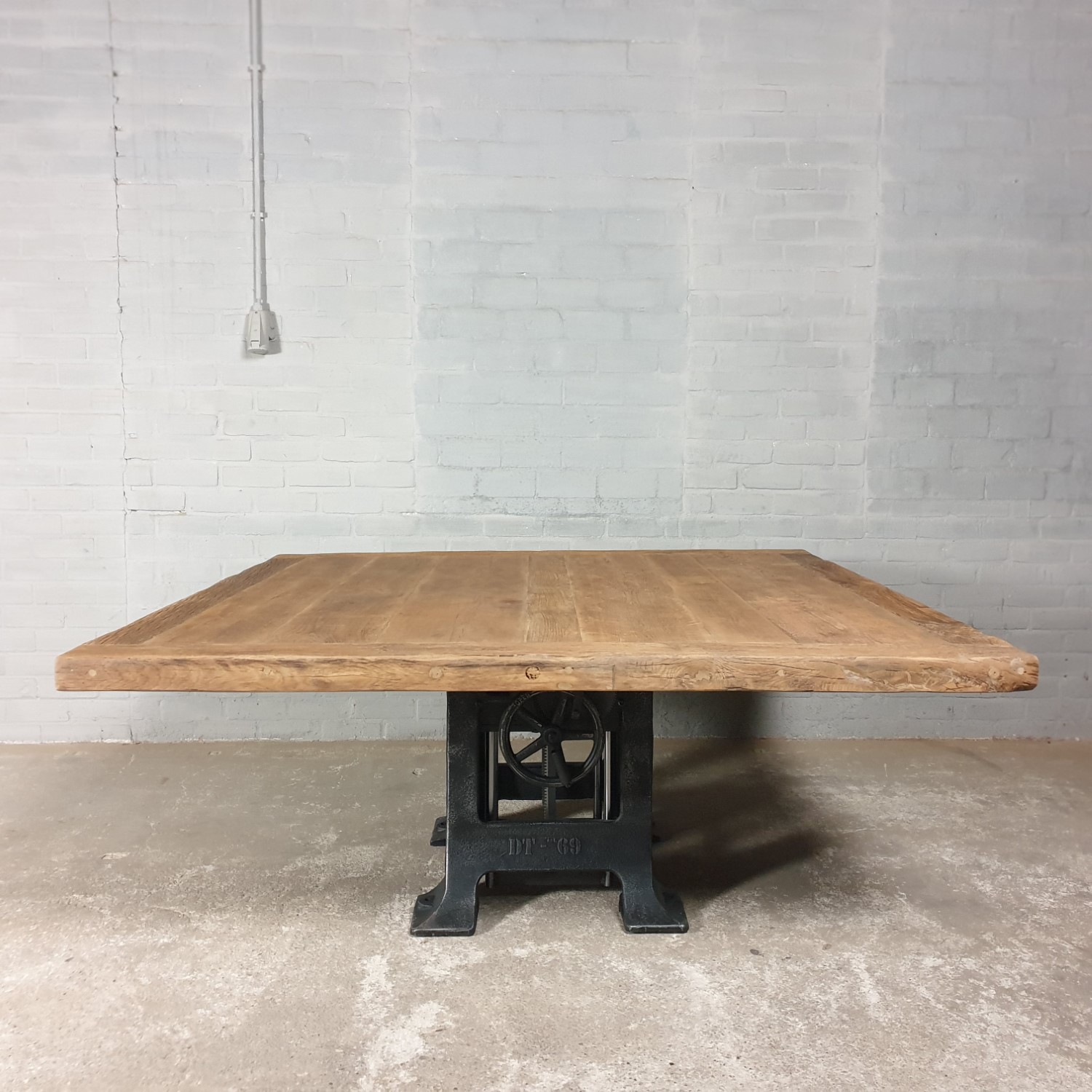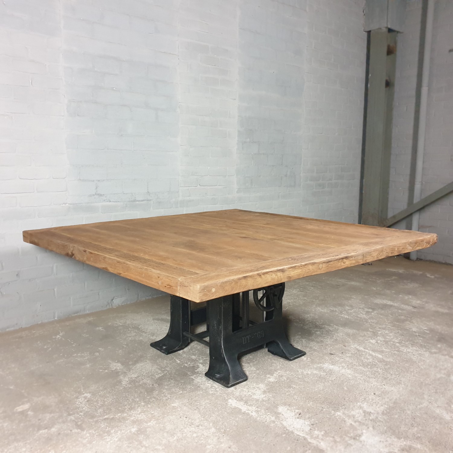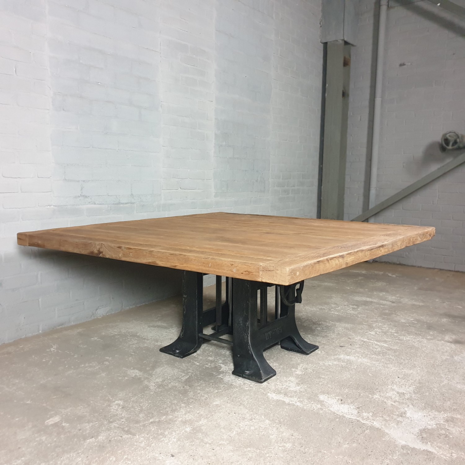 Deze vierkante in hoogte verstelbare tafel is gemaakt met een set zware gietijzeren poten, verstelbaar van 76cm naar 115cm hoog. Gebruik het als een gezellige eetkamertafel, of transformeer het in een stijlvolle bartafel voor een levendige en uitnodigende sfeer. Pas de hoogte aan naar uw wensen en creëer voor ieder moment de perfecte setting.