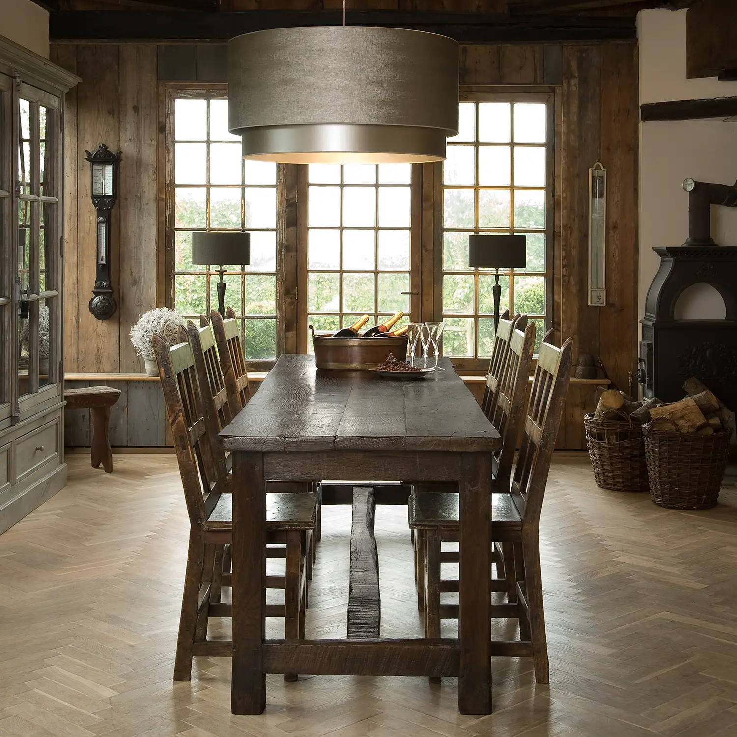 Landelijke eettafel Konstanz wordt gemaakt van massief oud eikenhout naar origineel model van een kloostertafel. De tafel wordt in onze eigen werkplaats met de hand gemaakt. Hierdoor komt de uitzonderlijke textuur en patina van het hergebruikt oude eikenhout mooi naar voren.